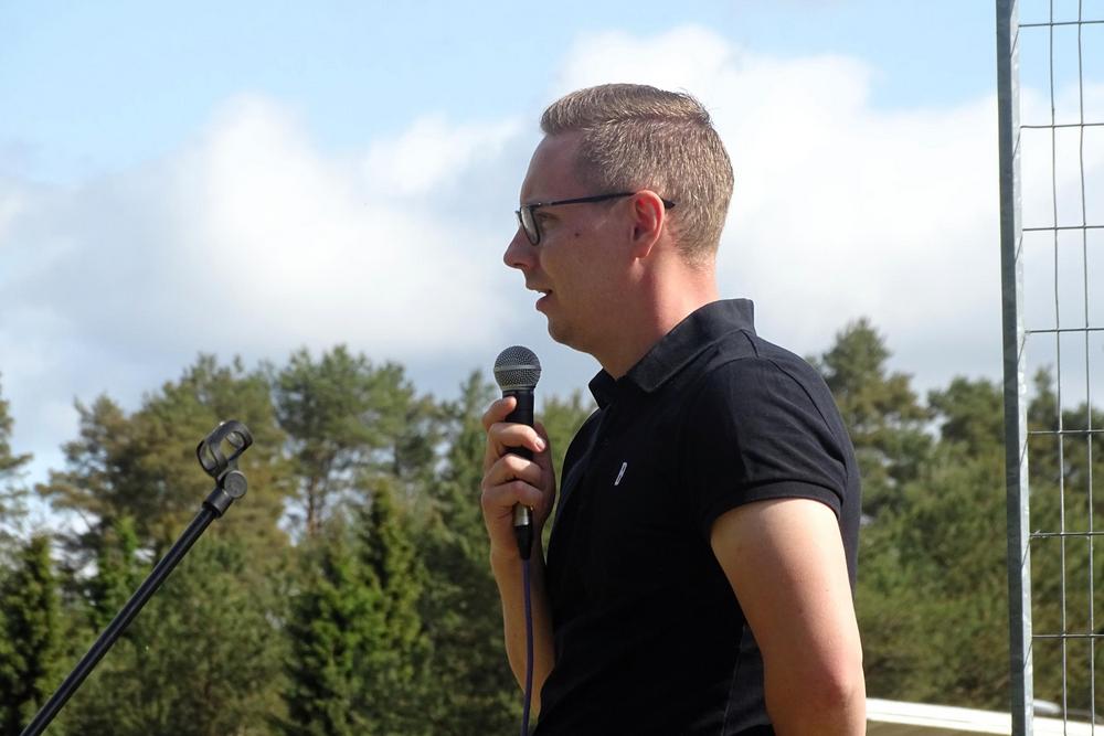 Kunnanjohtaja Kari Kankaanranta kertoi puheenvuorossaan ensimmäisen jokipolun historiaa.