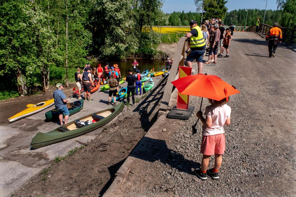 Tällä kertaa Eurajokea melottiin alajuoksulta meren rannalle. Kajakit ja muut kulkuvälineet lähtivät kello 13 jälkeen Vuojoen kartanon sillan kupeesta kohti Eurajoensalmea.