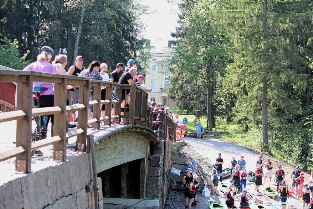 Retkimelojia oli saattelemassa Loisketta Eurajoessa -juhlan yleisö. Sillankannelta näki hienosti, miten kajakkiletka katosi virran mukana meren suuntaan. Lähtö onnistui hienosti.