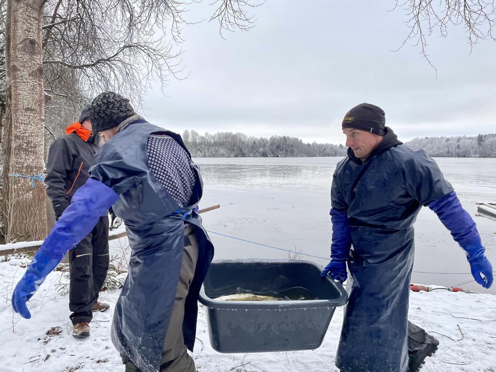 Eurajoen vesiensuojeluyhdistys tutustui 21. marraskuuta vaellussiian emokalapyyntiin, lypsämiseen ja hedelmöitetyn mädin hautomiseen Harjavallan Lammaistenlahdella.