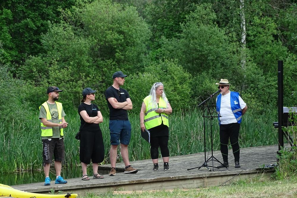 Lauri kertoi joen kalastosta. Harva tiesi, että joessa elää kaikkiaan 15 kalalajia. Lohikalojen lisäksi eniten ihmetystä aiheuttivat monelle tuntemattomat kalalajit kivennuoliainen ja törö.