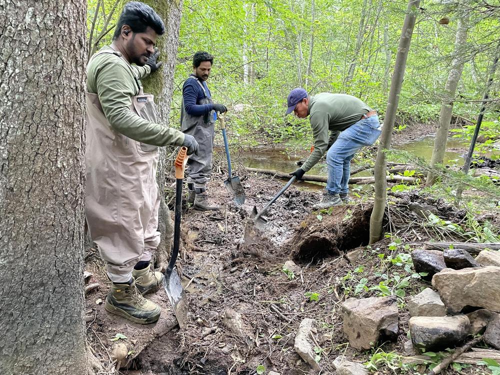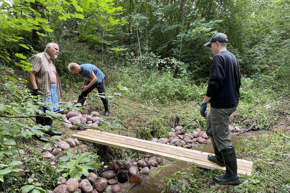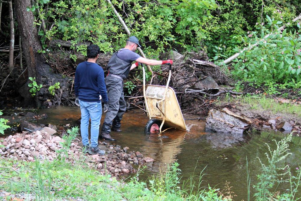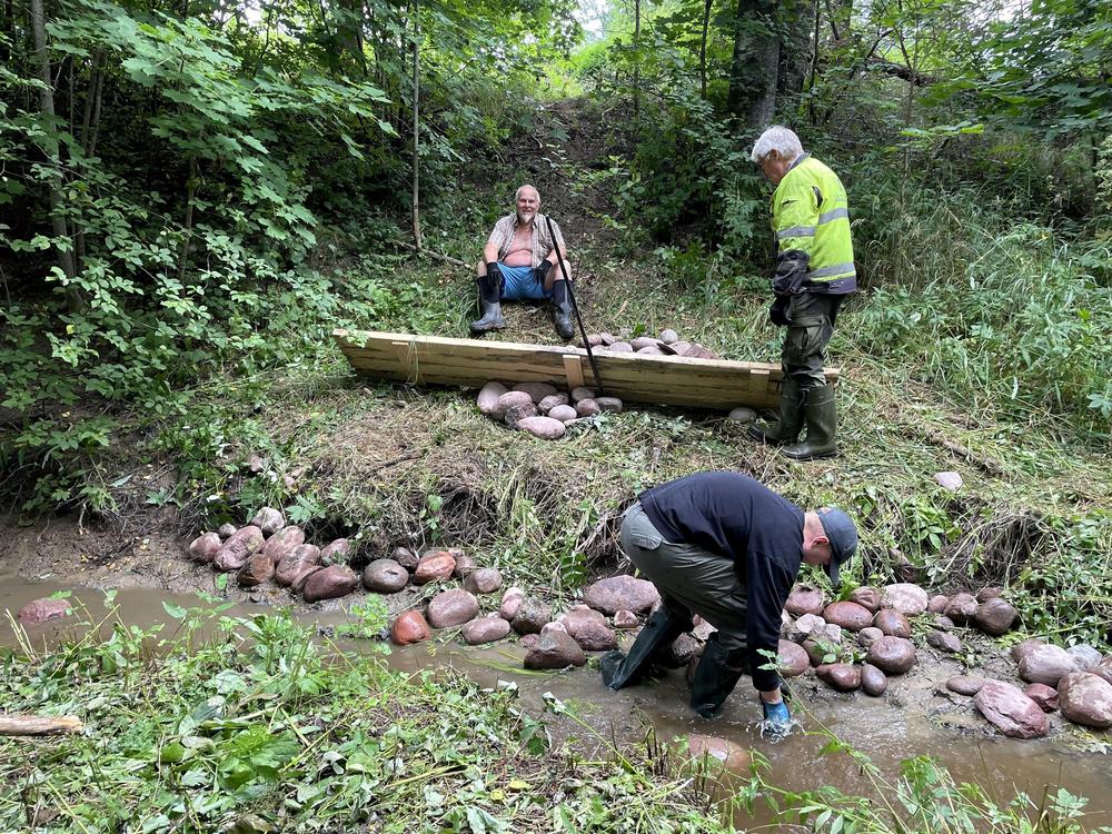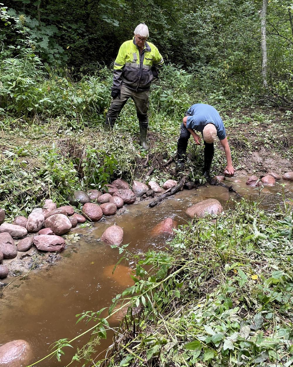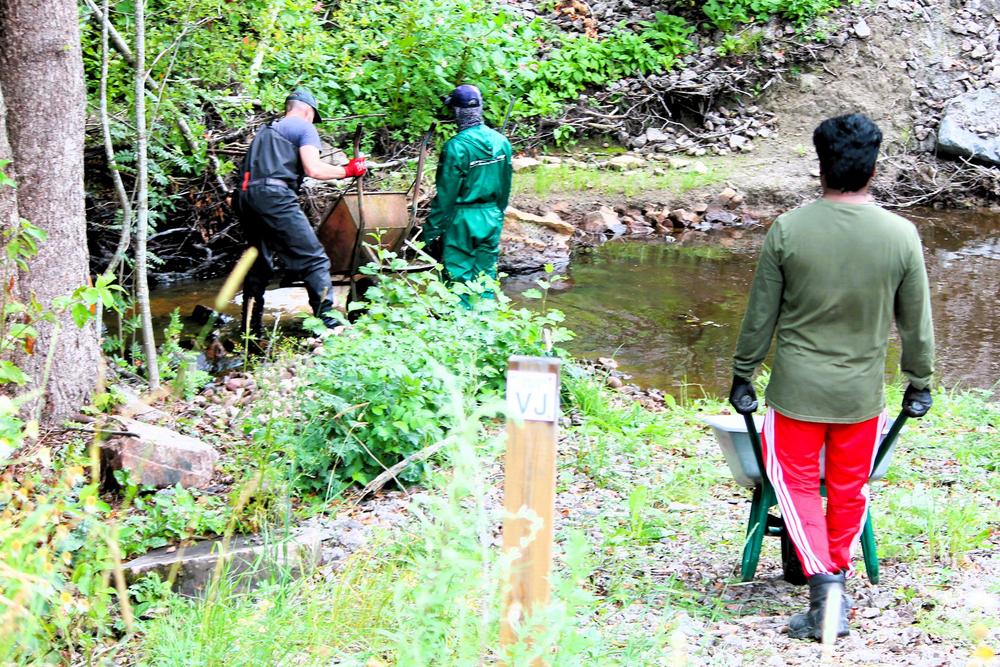 ”Talkoissa rakennettiin kolme kutusoraikkoa ja aseteltiin isompia lohkareita eri jokiosuuksille monipuolistamaan virtausolosuhteita. Lisäksi purettiin joitain kiviröykkiöitä joen sivusta tehden kivien väliin virtausreittejä, kertoo asiantuntija Jerome Tornikoski Pyhäjärvi-instituutista.