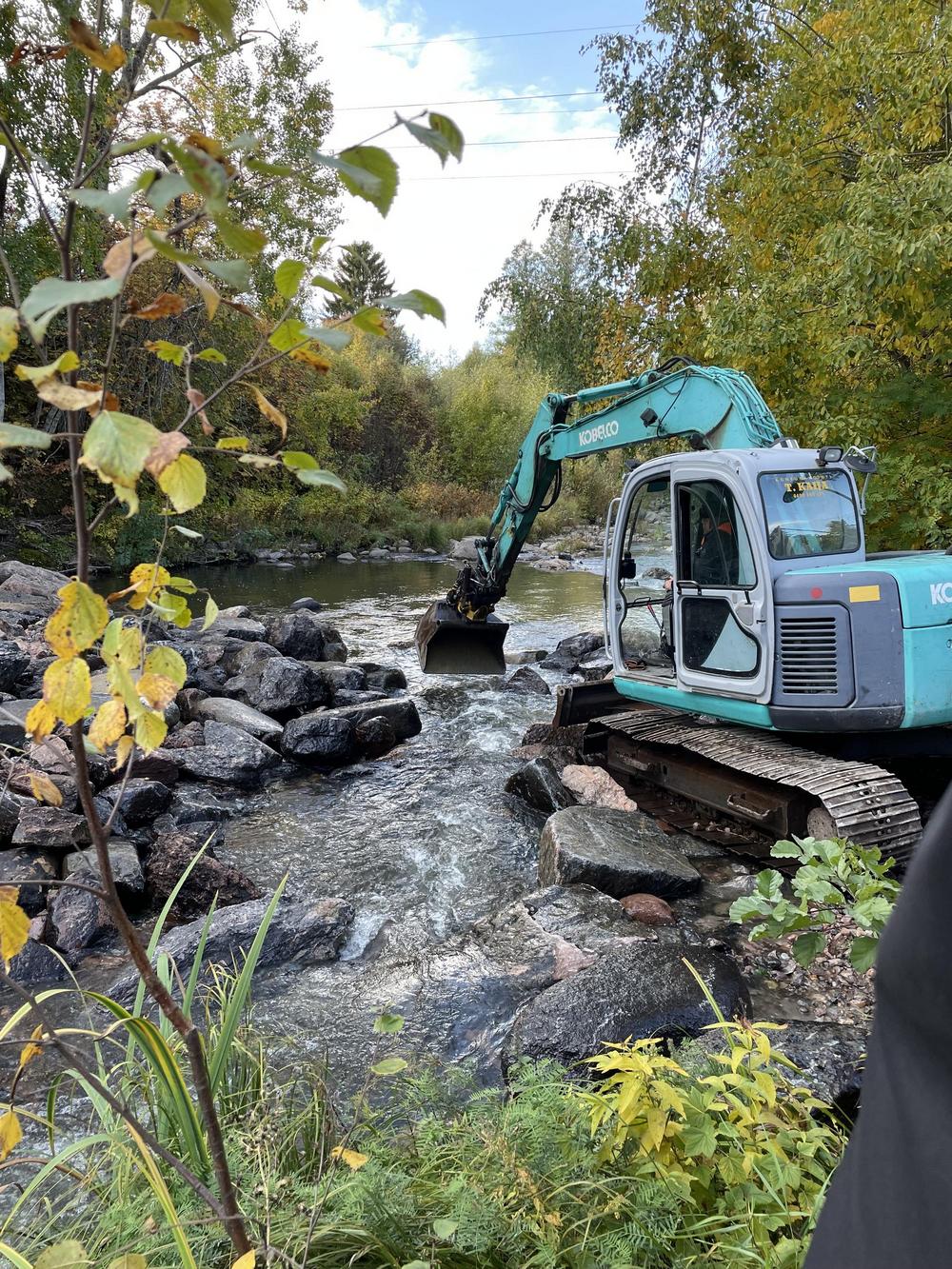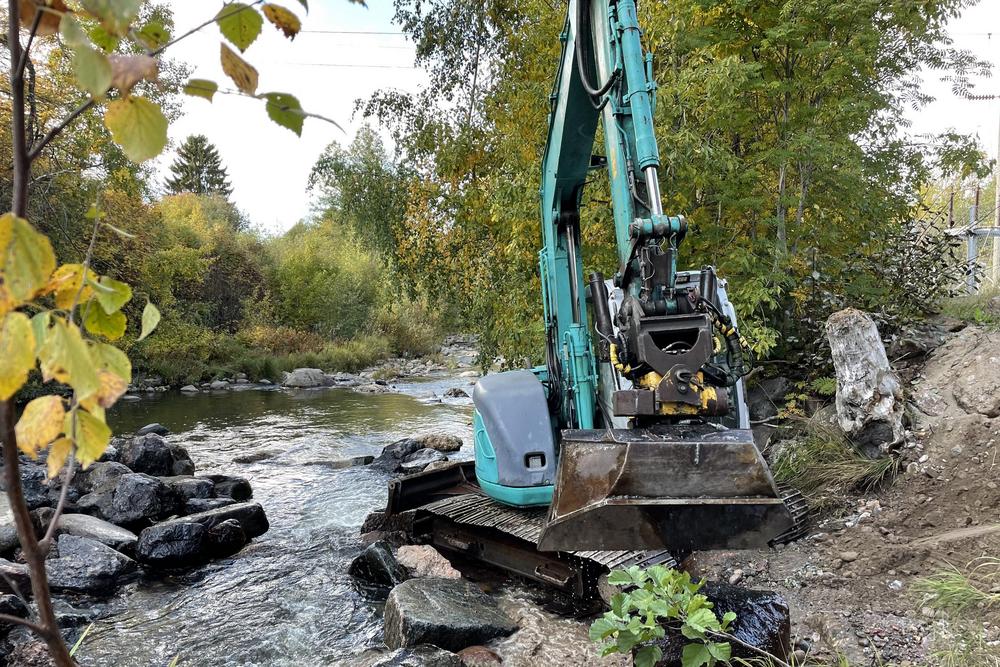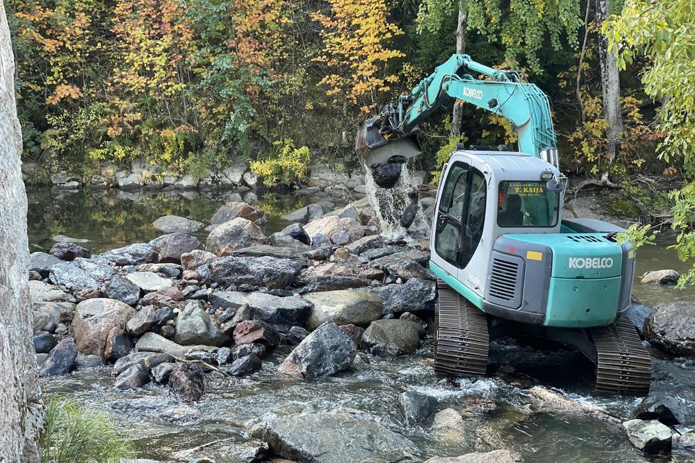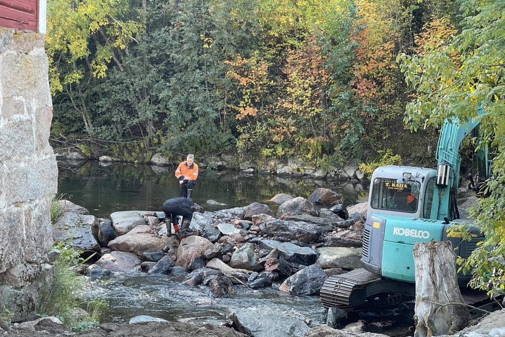 ELY-keskuksen kalatalousyksikön Mika Sivil ja Koneurakointi T. Kaija korjasivat yhteistoimin patouoman taas toimivaksi.