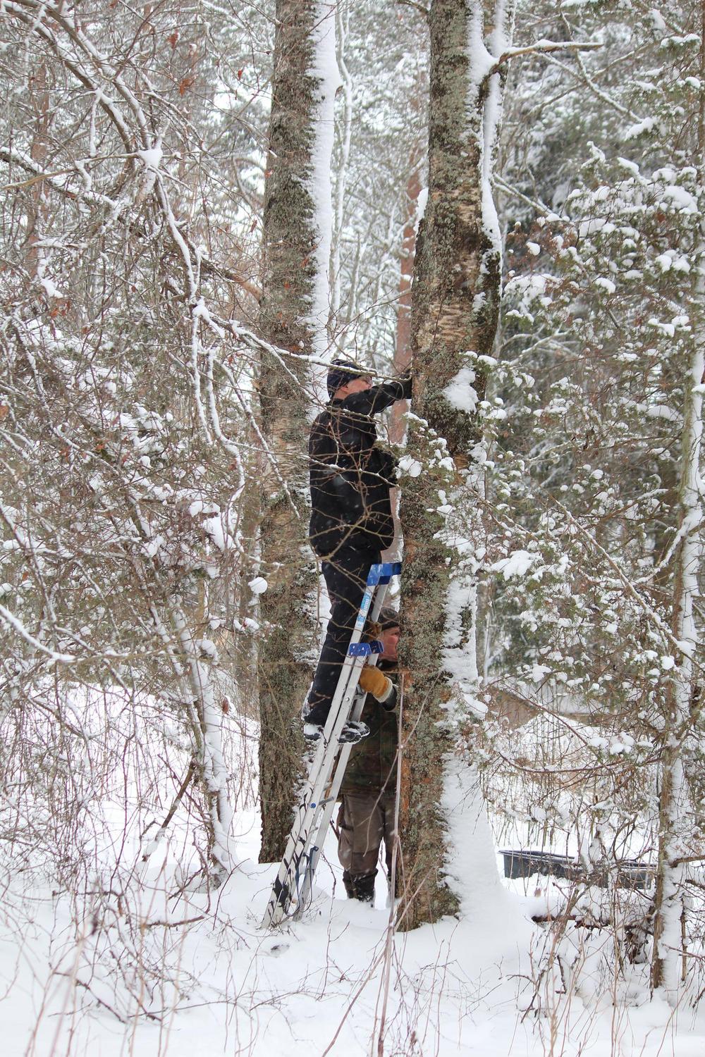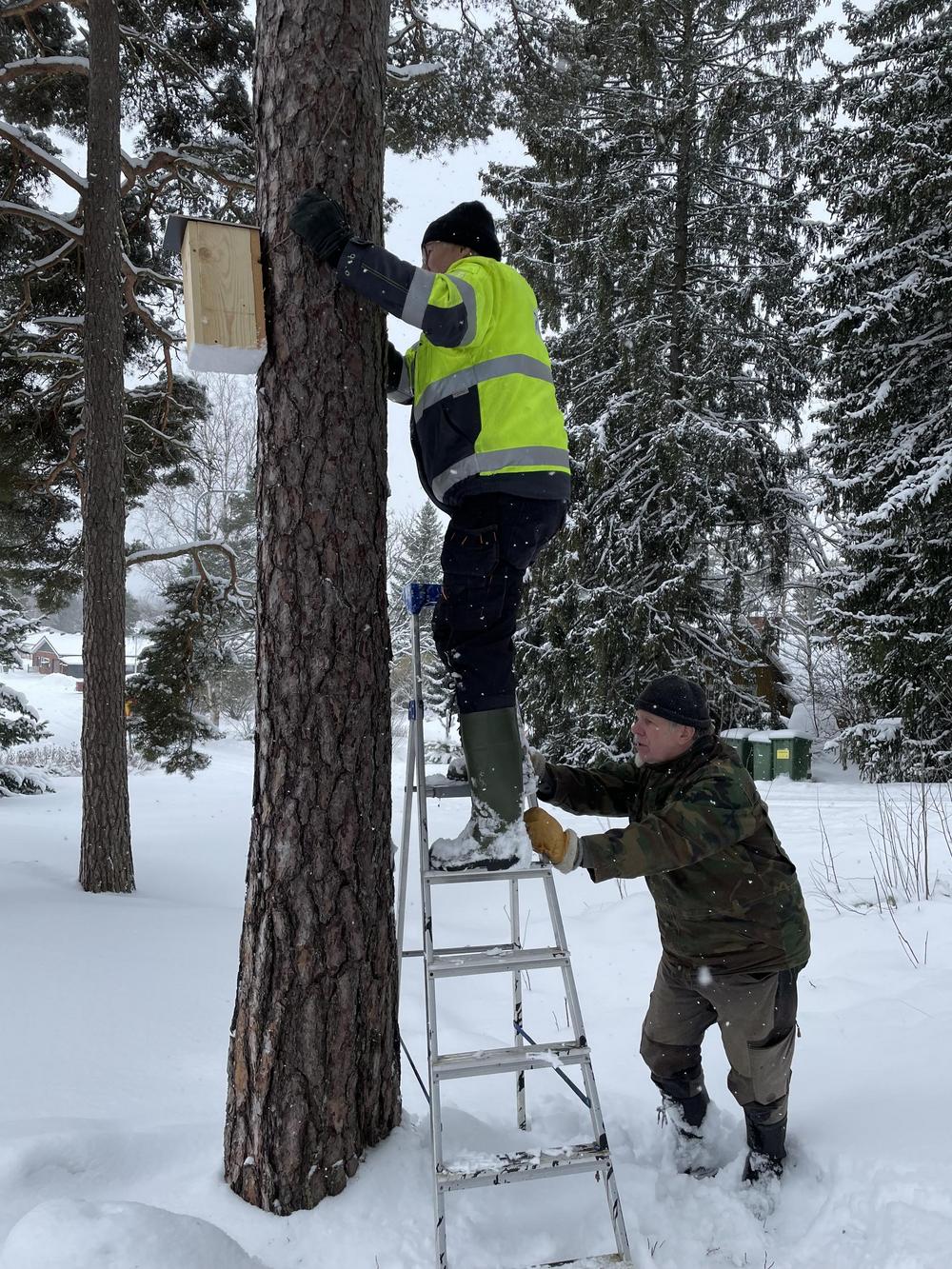 Eurajoen vesiensuojeluyhdistys ripusti linnunpönttöjä Saharinkosken rannalle ja Eurajoen kunnanviraston pihapiiriin.