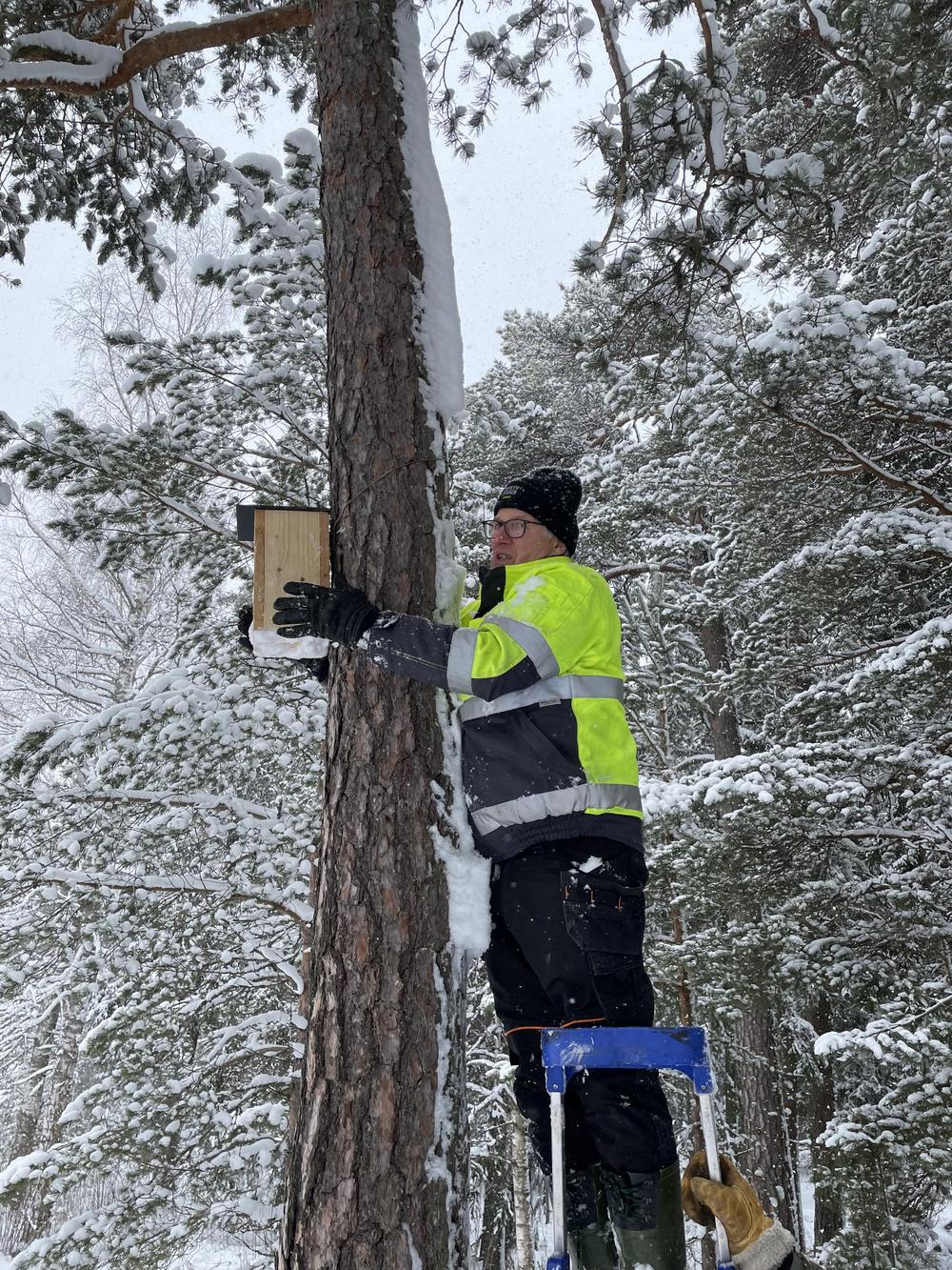 Viisi puuvalmista pönttöä ripustettiin viraston männikköön. Loput laitettiin Ruikan laavun ympäristöön, jonne syntyi laadukas pikkulintujen asuinalue.